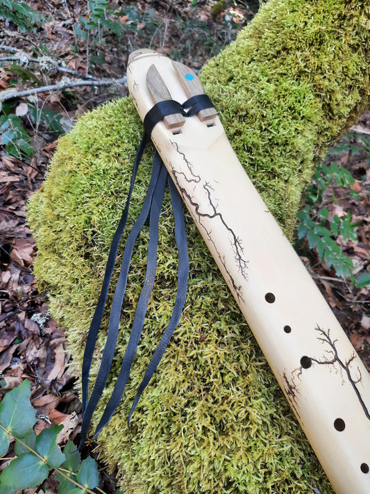 IN STOCK, mid-range, G minor, triple drone with WOOD FRACTAL burning and galactic stone inlay.