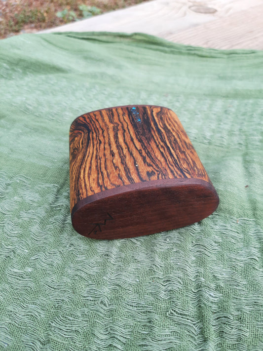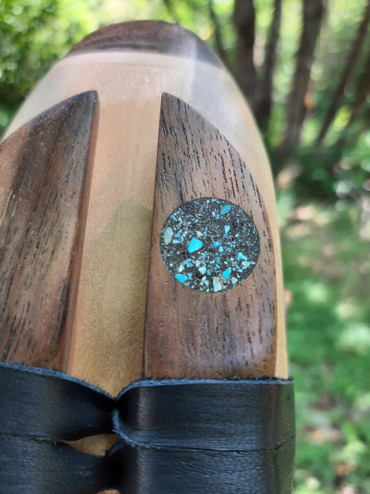 IN STOCK, Bocote shaker with walnut ends and Turquoise stone inlay