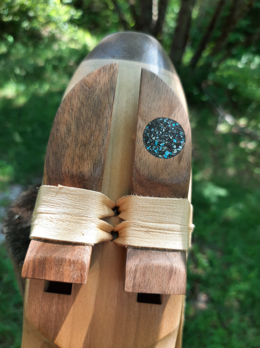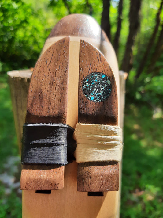 IN STOCK, Key of A, aeolian 440 hz. Alternating drone with Turquoise and black pumice inlay